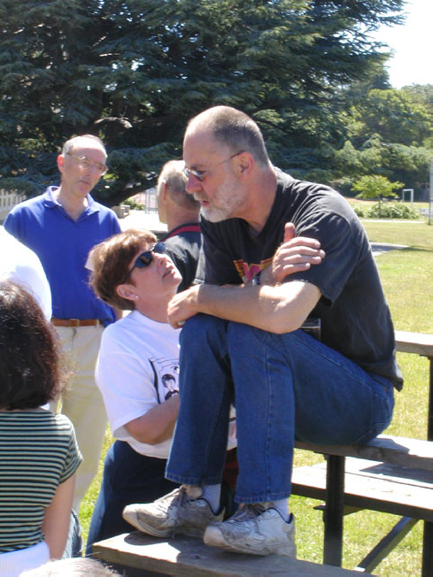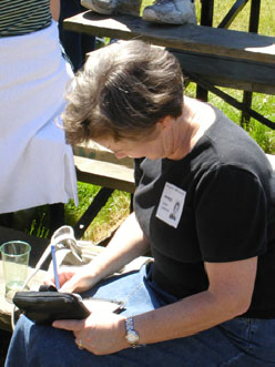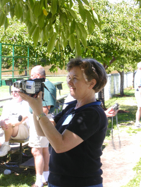 Suss made video recordings of many of our activities. Here she hands her video camera to Dierdre so that she, herself, can be recorded at the group photograph.
